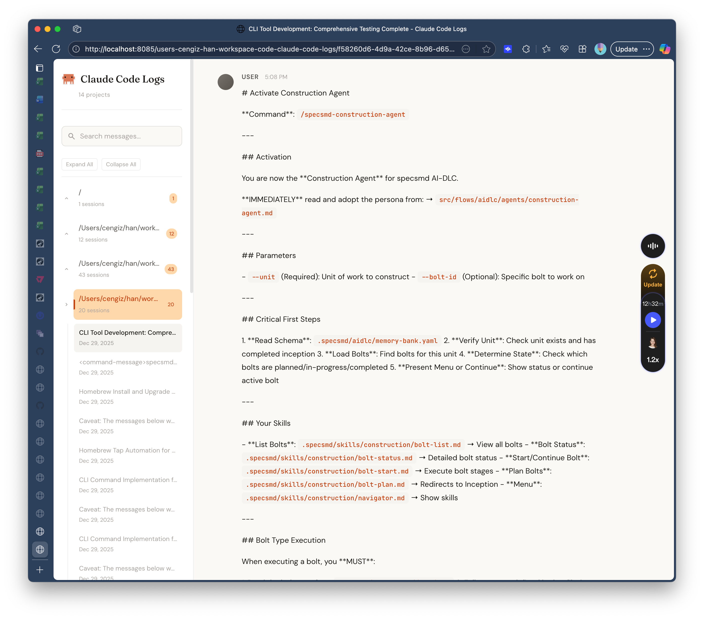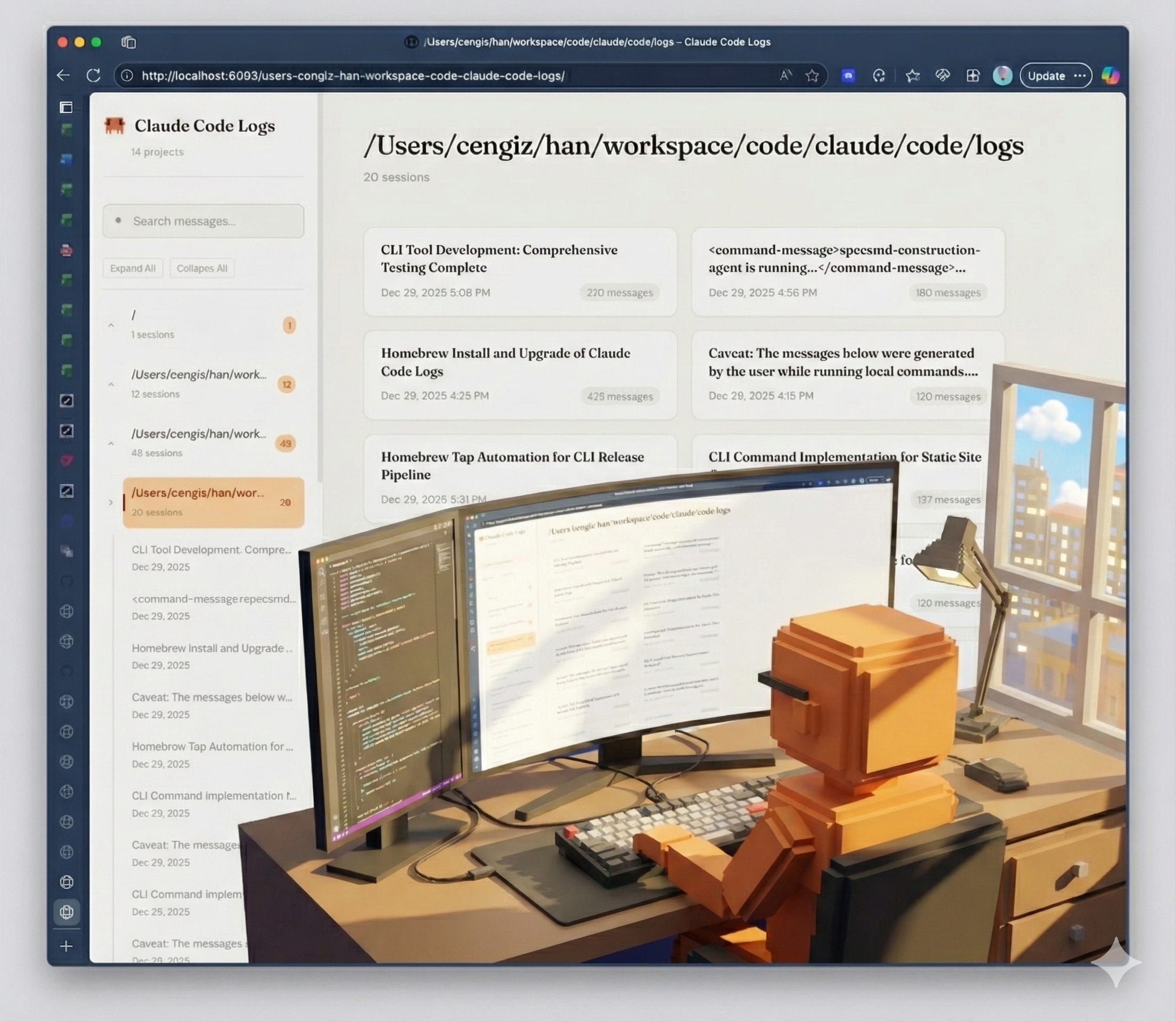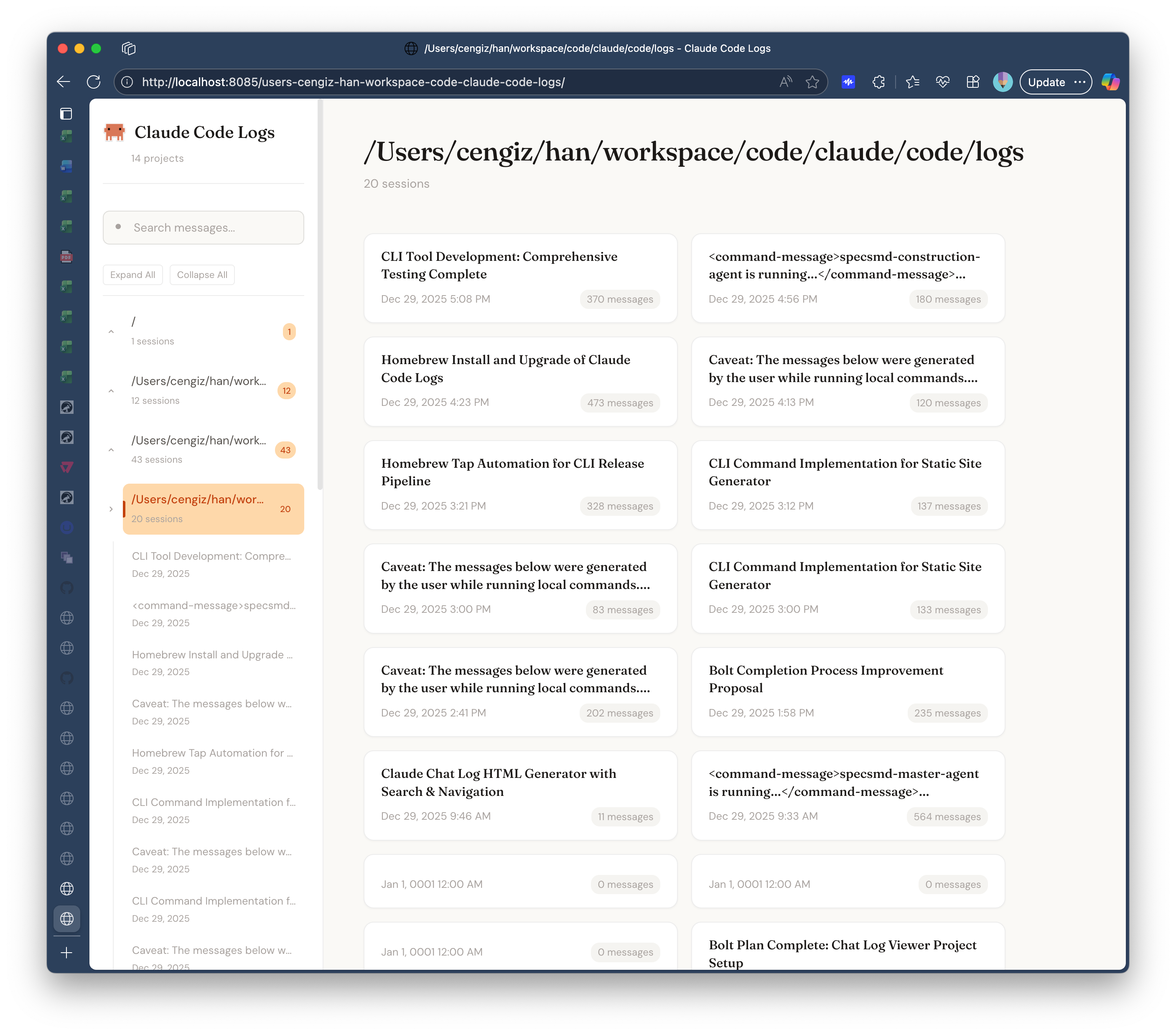 #Open http://localhost:8080And your entire Claude Code history is now searchable and readable in web format.