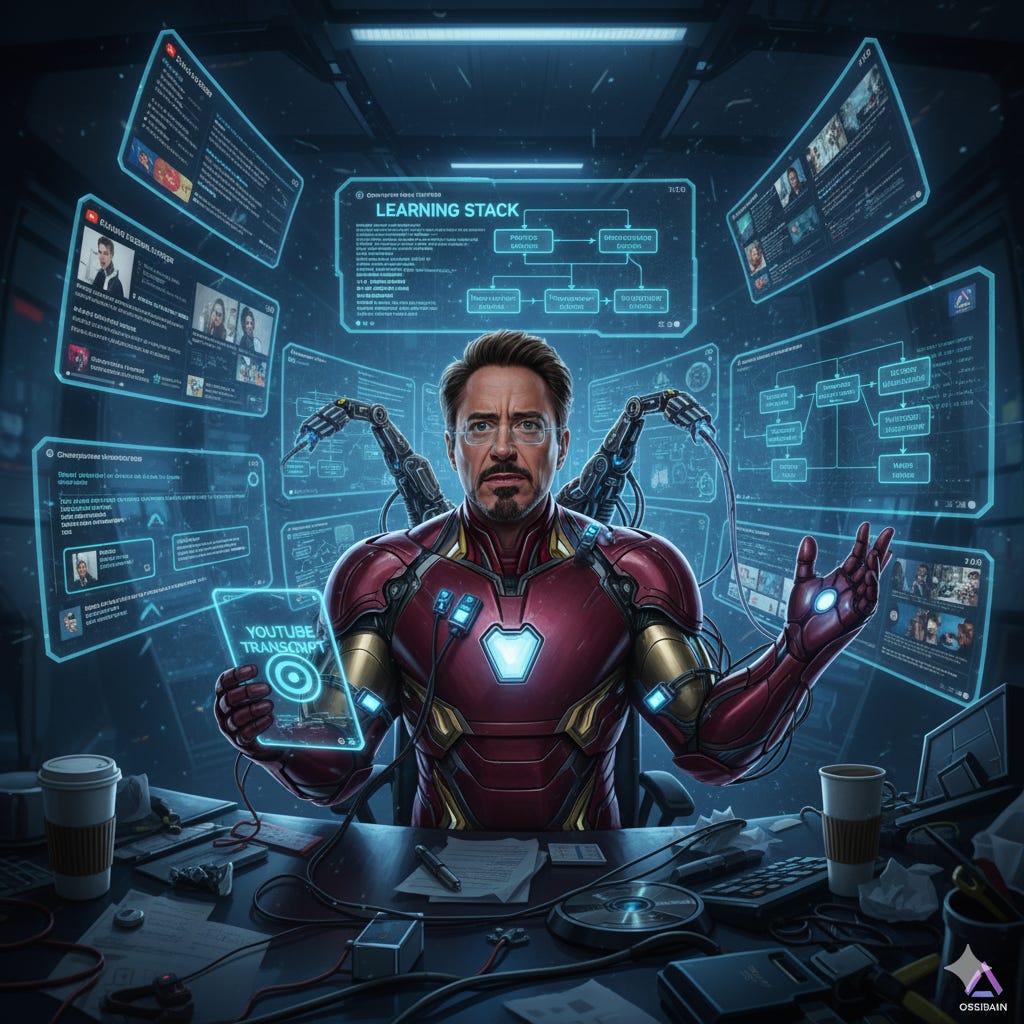 The goal? Turn my scattered learning into a connected knowledge system. No more “where did I read that thing about agents?” - just ask Claude to search my Obsidian vault.